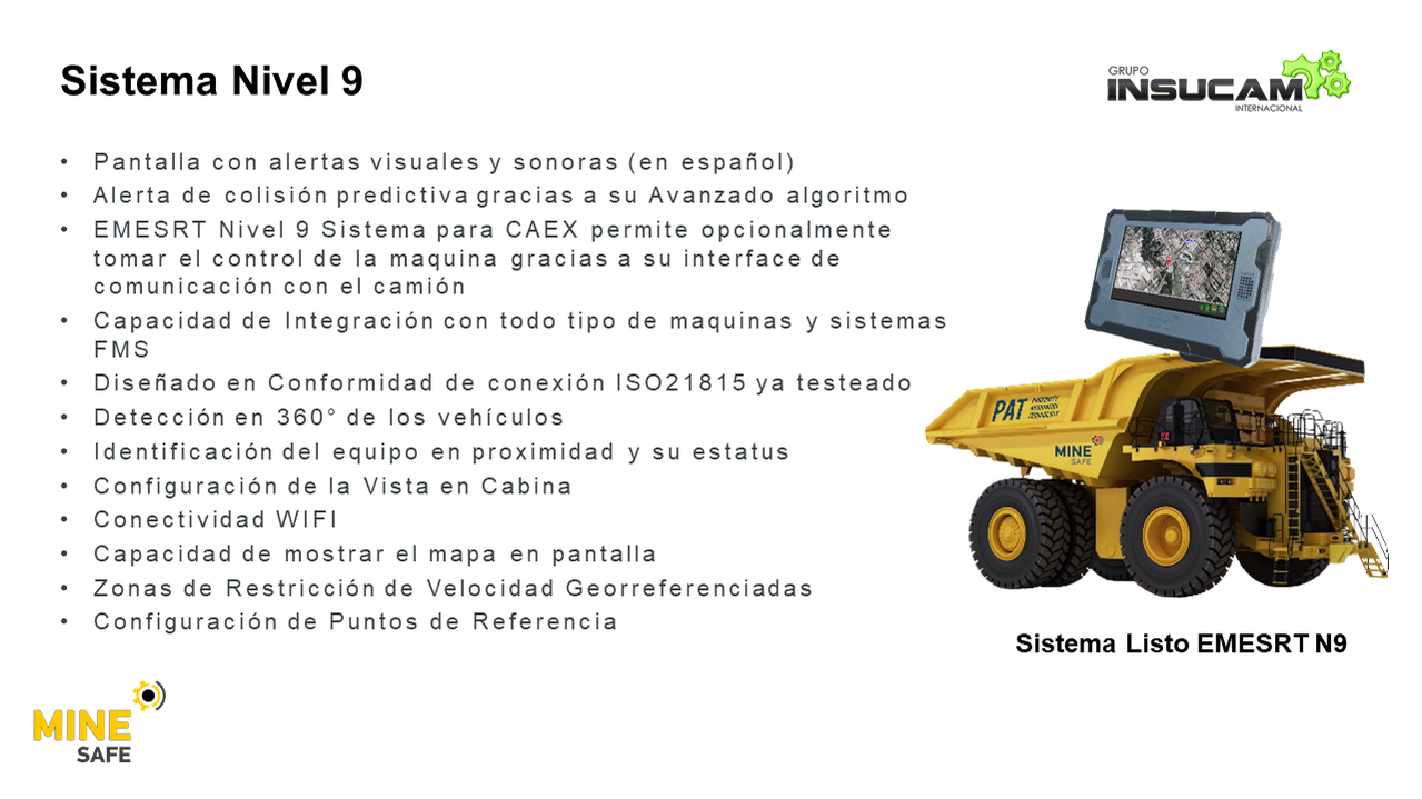 Con la Tecnología MineSafe, puede lograr el "cero daño" en su operación minera. Esta solución es una respuesta integral a los niveles de seguridad Nivel 8 y Nivel 9 según lo definido por la Mesa Redonda de Seguridad de Equipos de Movimiento de Tierra (EMESRT)